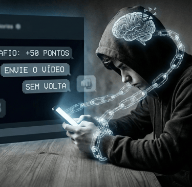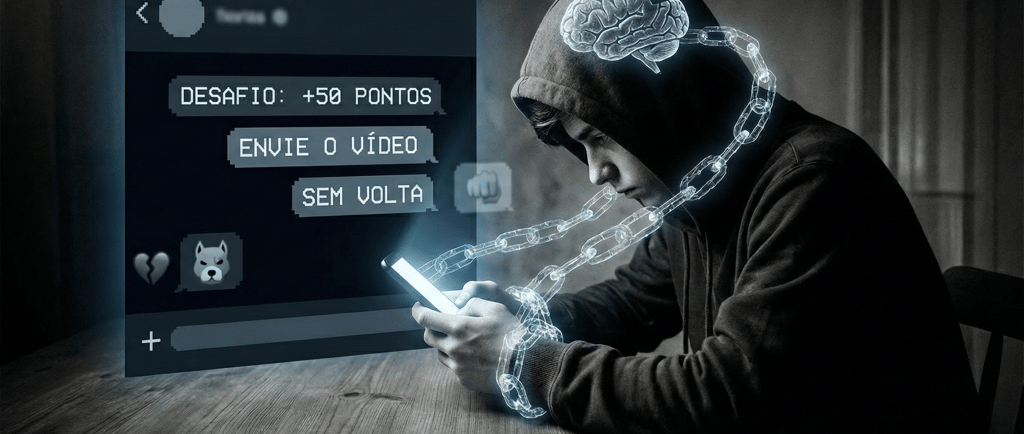 O funcionamento desses grupos costuma obedecer a uma lógica de aliciamento: jovens são atraídos por adultos — ou por intermediários já cooptados pela cultura interna — para participar de “jogos” ou “desafios” que, sob a aparência de brincadeira, operam como dispositivos de captura e coerção. As tarefas podem incluir o envio de fotos íntimas, agressões a animais e a utilização de objetos para provocar ferimentos em si mesmo. A promessa simbólica que sustenta o engajamento é sempre semelhante: ganhar pontos, demonstrar coragem, provar força, ser reconhecido. Em outras palavras, instrumentaliza-se o senso de pertencimento — elemento particularmente sensível na adolescência — para induzir e manipular sujeitos em formação a praticarem atos que, fora daquela bolha, reconheceriam como moralmente repulsivos. A perversidade está menos no improviso do horror e mais na engenharia social que o torna gradualmente “normal”, incorporando-o à gramática do grupo como se fosse uma forma de mérito.